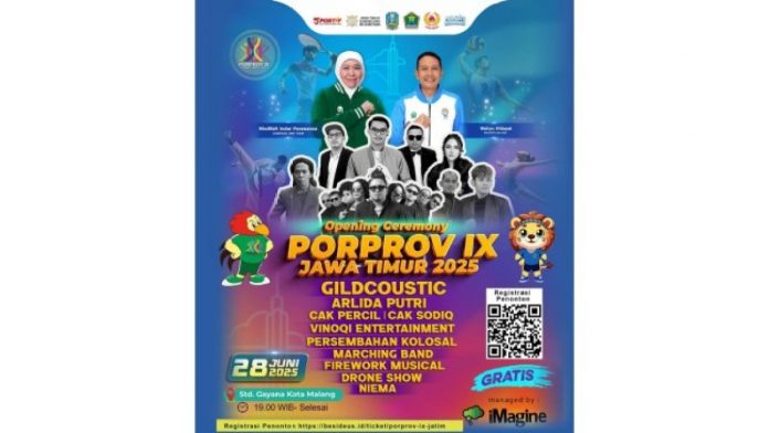 KOTA MALANG — Pembukaan Pekan Olahraga Provinsi (Porprov) Jawa Timur IX 2025 akan digelar secara meriah di Stadion Gajayana, Kota Malang, pada Sabtu malam (28/6/2025).