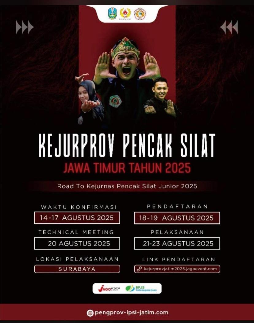 SURABAYA –  Sebanyak 144 pesilat dari 28 kabupaten/kota, akan bertarung untuk meraih prestasi terbaik di Kejuaraan Provinsi (Kejurprov) Pencak Silat Jatim 2025, yang digelar di City of Tommorow (Cito) Surabaya 21-23 Agsutus.