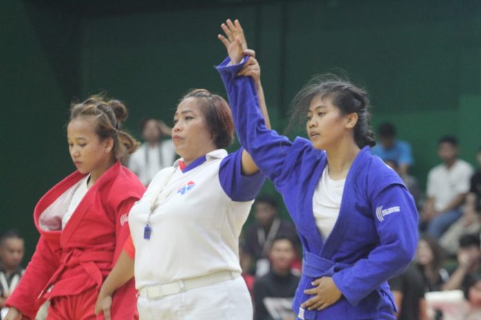 KUDUS – Langkah mantap Iin Wijayanti di arena Sambo akhirnya berbuah manis. Atlet andalan Jawa Timur itu berhasil merebut medali emas di kelas -59 kilogram setelah menundukkan Norhadi Fithri Annisa dari Jawa Barat pada final Pekan Olahraga Nasional (PON) Bela Diri 2025 yang digelar di Djarum Arena 2, Kudus, Minggu (12/10/2025).