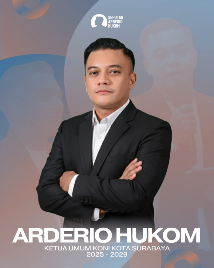 Arderio Hukom, ditetapkan sebagai Ketua KONI Surabaya periode 2025–2029 melalui aklamasi, setelah mendapatkan dukungan mayoritas cabang olahraga (cabor) yang hadir. Sidang pleno yang dipimpin Ketua IMI Surabaya, Rinto Ari Rakhmanto, langsung mengetuk palu setelah seluruh persyaratan terpenuhi.