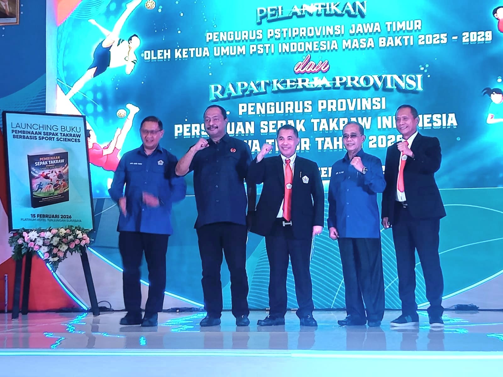 SURABAYA – Pengurus Provinsi Persatuan Sepak Takraw Indonesia (PSTI) Jawa Timur resmi dilantik, Minggu (15/2/2025) di Surabaya.