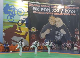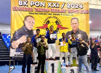 BANDUNG – Hari pertama, Babak Kualifikasi Pekan Olahraga Nasional (BK PON) XXI/2024 Kejurnas Tarung Derajat, petarung Jawa Timur (Jatim) lolos 4 atlet dari 6 yang...
