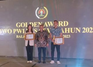 BALIKPAPAN - Seksi Wartawan Olahraga (SIWO) PWI Pusat, memberikan penghargaan kepada atlet selam asal Jawa Timur, Janis Rosalita Atlet Terbaik Putri dalam Anugerah Olahraga Golden Award, di Balikpapan, Kalimantan...