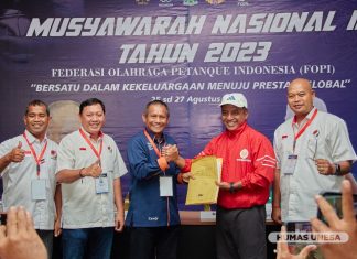 SURABAYA - Prof. Dr. Nurhasan M.Kes., (Cak Hasan), terpilih sebagai Ketua Umum Pengurus Besar Federasi Olahraga Petanque Indonesia (PB FOPI) periode 2023-2027.